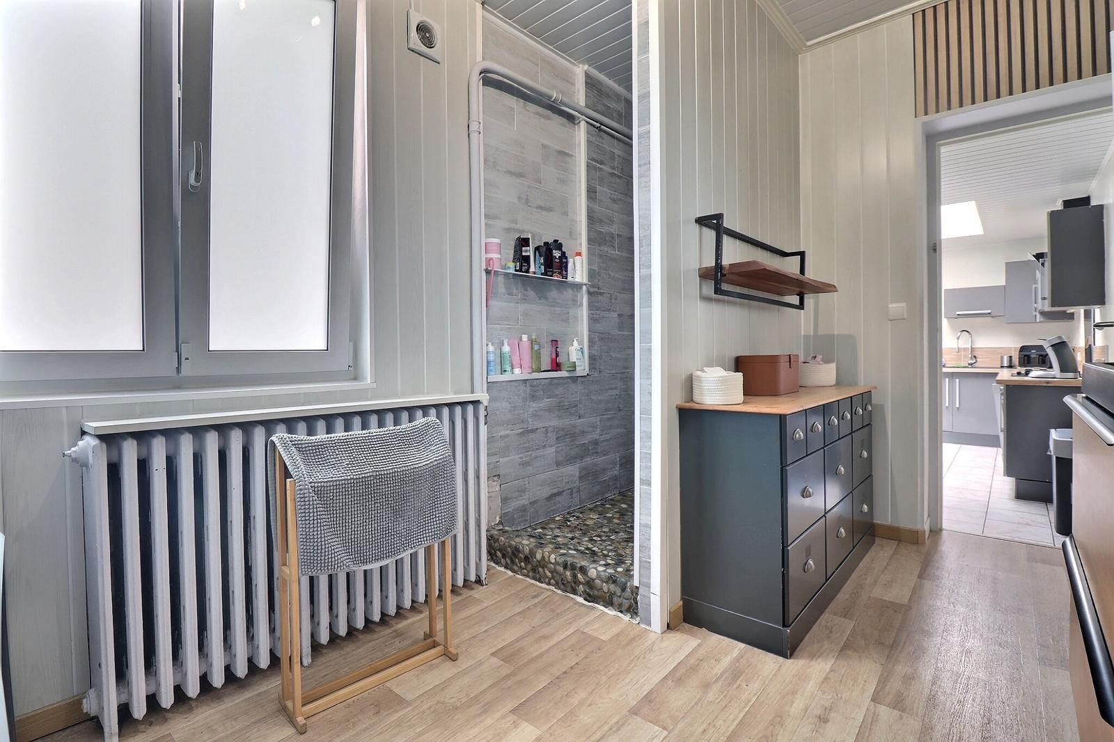 Une salle d’eau avec douche à l’italienne complète ce niveau.