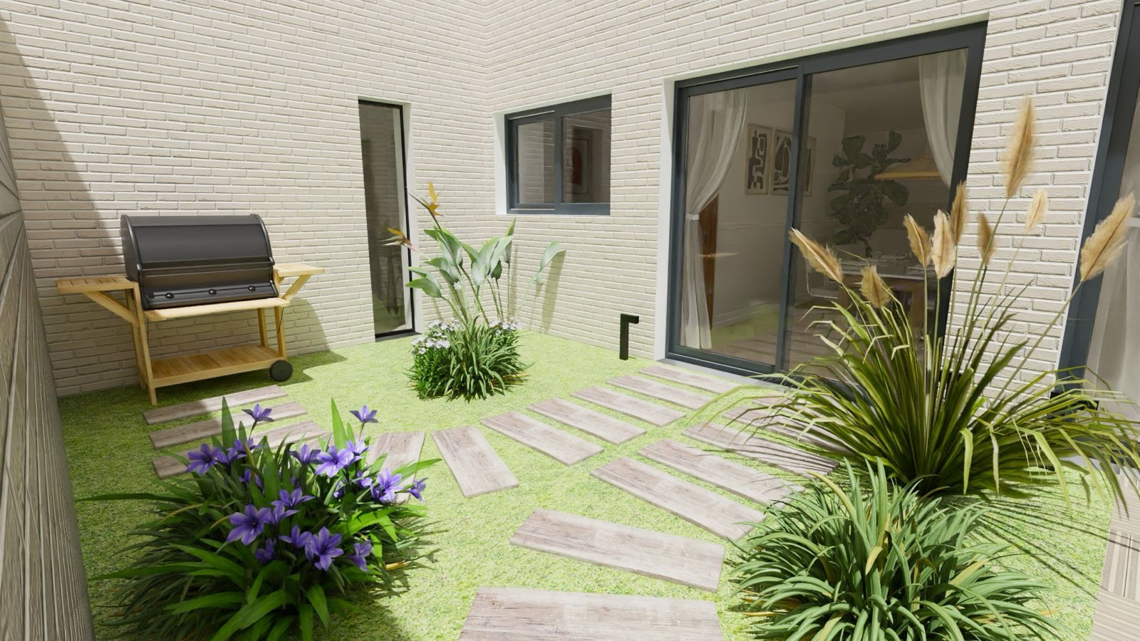 o LOT A (RDC) – 109,4 m2 (Type T4) : Un volume de plain-pied comprenant un séjour de 63,6 m2, 3 espaces nuits et un jardin privatif de 25,7 m2.